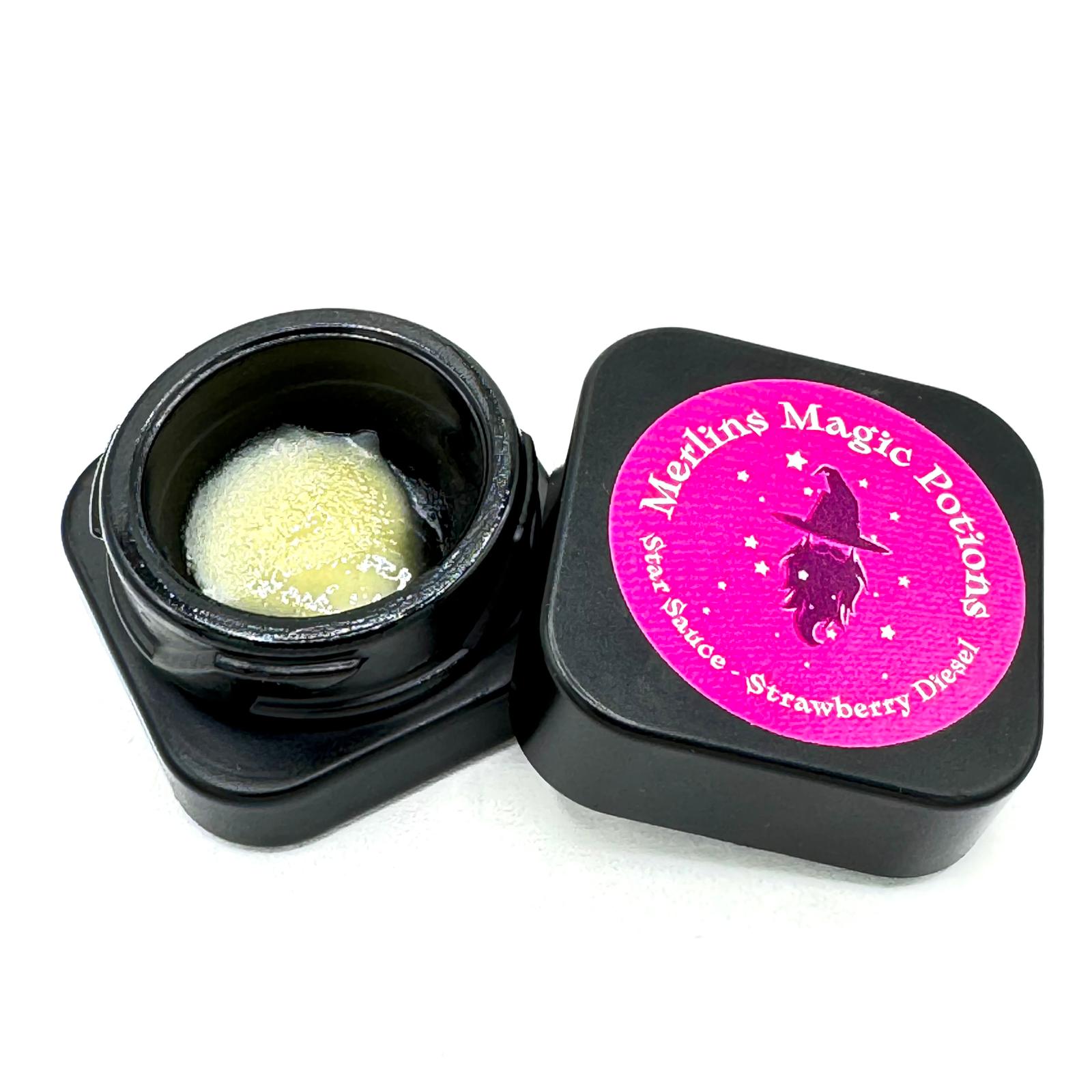 Introducing Strawberry Diesel Star Sauce, a delightful creation from Merlin's Magic Potions now available for you to enjoy. This unique blend captures the essence of sweet strawberries and the invigorating notes of diesel, resulting in a heavenly flavor profile that will transport your senses to new heights. Indulge in the irresistible combination of fruity bliss and energizing undertones with each dab of Strawberry Diesel Star Sauce, now offered at Bulk CBD Distributors.
